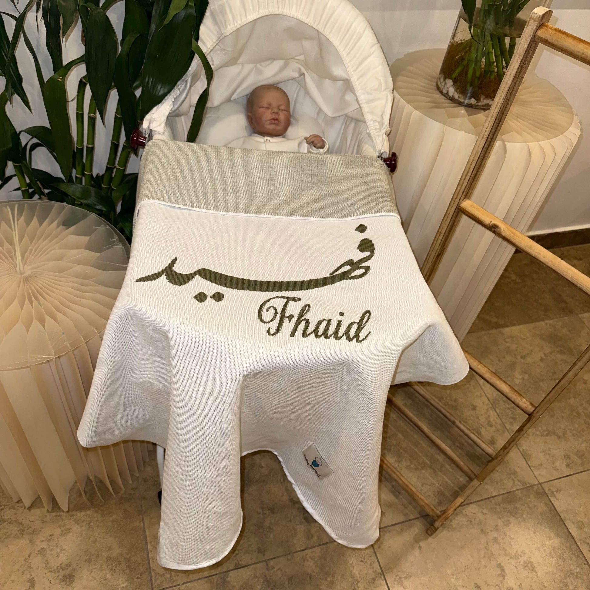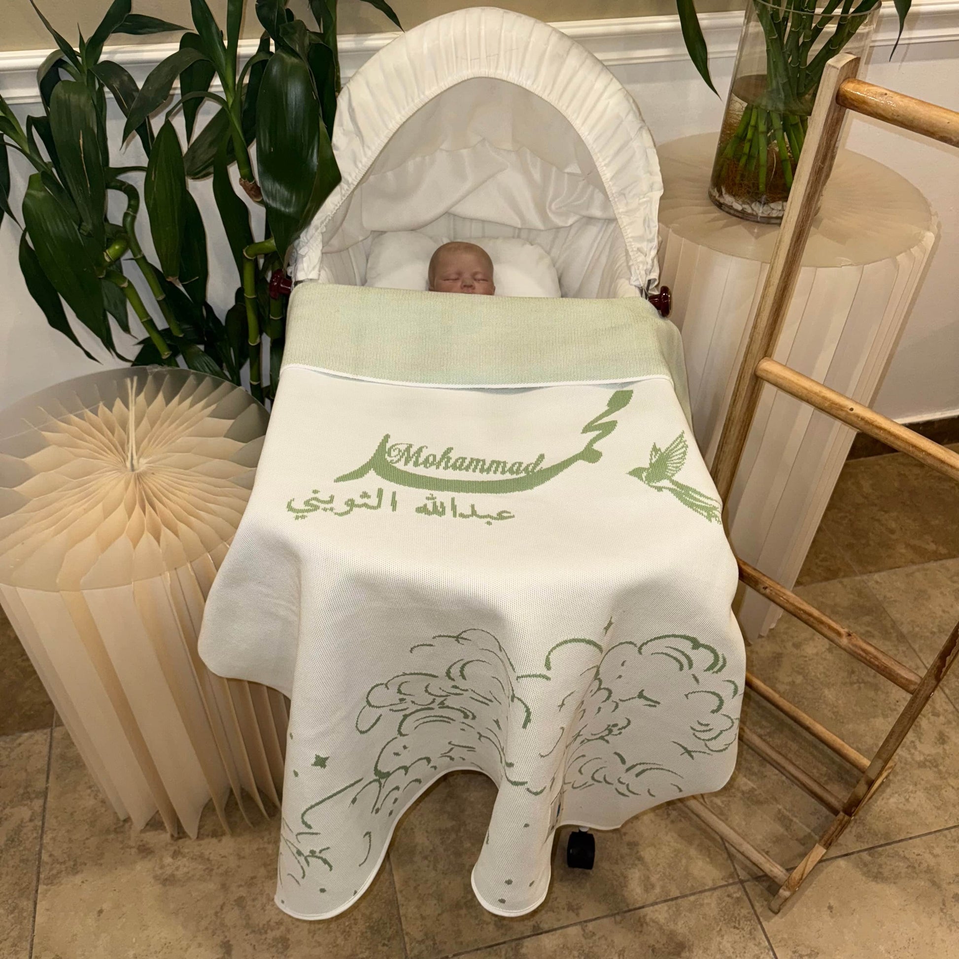 🎁 اجعلي لحظات الاستقبال أكثر تميزًا مع بطانية ناعمة، منسوجة بحب، وتحمل اسم مولودكِ بفخر!